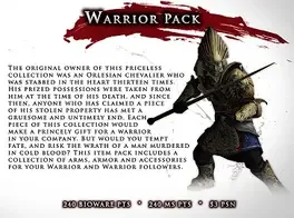 Lay waste to your enemies with this collection of arms, armor and accessories for your Warrior and Warrior followers. Features 3 follower items, player weapons and armor sets.