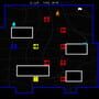 Without crossing colors, move the blob characters around the field. By pushing boxes, have the blobs interact and together help them reach their goals.