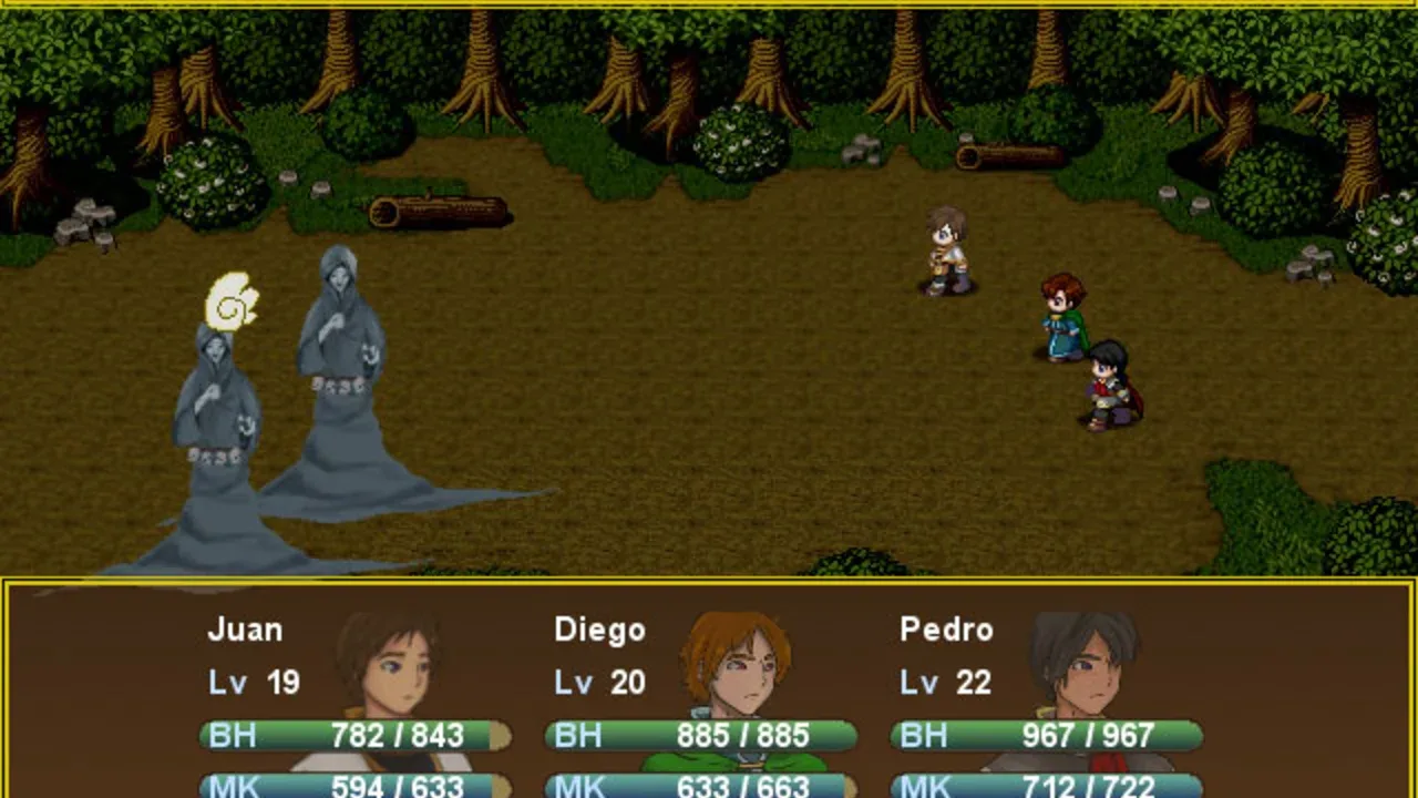 Oriental Blue is an RPG from the Far East of Eden series. It has a unique magic system and different pathways the story can take depending on in-game choices. The game continues the tradition of the series. You play as either Tenran or Aoi, a teenage boy and girl, respectively, on quest to defeat the ancient evil that threatens the prosperous land of Jipang, to prove themselves worthy of the legendary Fire Clan, warriors who have been protecting Jipang for many generations from evil demons and warlocks. The land Jipang is very similar to medieval Japan, and during your adventure you'll also visit Mongolia, China, and other Asian countries. The most important new feature of the game is a non-linear storyline. You can tackle many missions in any order you want, and the storyline also changes depending on the outcome of major battles. If you lose against a boss enemy, the game is not over, but instead, a branching storyline path is revealed. Otherwise, the gameplay is similar to other Far East of Eden games, featuring overworld map traveling and first person perspective, turn-based combat.