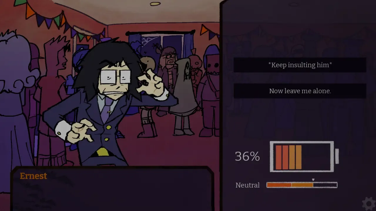 The visual novel where you DON'T want to talk to anyone...but everyone wants to talk to you! Sit and survive all alone at a party where you know nobody else. Manage your social battery, maybe scroll on your phone to calm yourself down…and hope you can keep it together as unfamiliar faces try to make small talk with you.