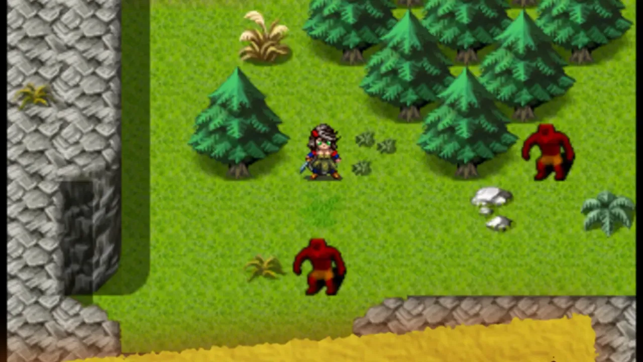 Oriental Blue is an RPG from the Far East of Eden series. It has a unique magic system and different pathways the story can take depending on in-game choices. The game continues the tradition of the series. You play as either Tenran or Aoi, a teenage boy and girl, respectively, on quest to defeat the ancient evil that threatens the prosperous land of Jipang, to prove themselves worthy of the legendary Fire Clan, warriors who have been protecting Jipang for many generations from evil demons and warlocks. The land Jipang is very similar to medieval Japan, and during your adventure you'll also visit Mongolia, China, and other Asian countries. The most important new feature of the game is a non-linear storyline. You can tackle many missions in any order you want, and the storyline also changes depending on the outcome of major battles. If you lose against a boss enemy, the game is not over, but instead, a branching storyline path is revealed. Otherwise, the gameplay is similar to other Far East of Eden games, featuring overworld map traveling and first person perspective, turn-based combat.