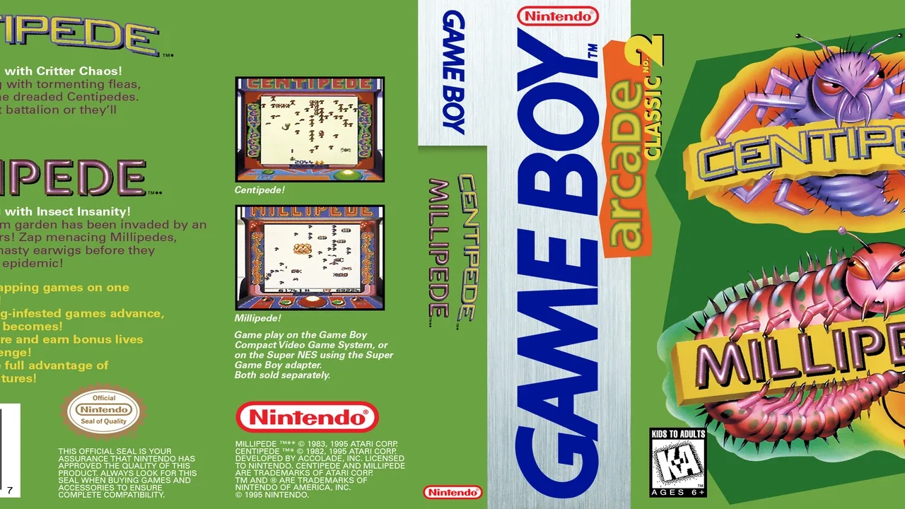 A compilation and port of the classic arcade titles. The games can also be played on the Super Game Boy Peripheral and has altered graphics from the original versions. It does not feature the ability to use the Link Cable, but does have an option for two friends to take turns for each game.