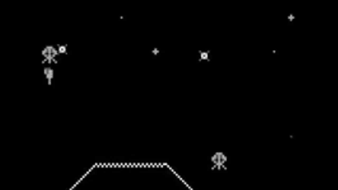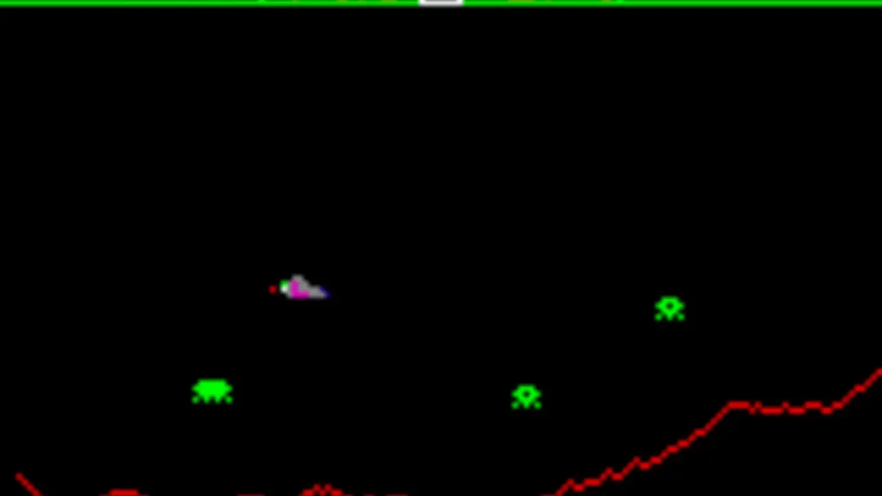 Space Attack is a 1-player arcade game for the VIC-20. The player controls a small vessel at the bottom of the screen that moves horizontally and fires vertically. Numerous alien vessels approach from the top. These vessels move side to side, and fire angled and straight shots. The player gains 10, 20, 30, or 40 points depending on the ship destroyed. Progressively faster aliens appear as the game progresses. There are 3 skill levels, and the player has 3 vessels each game.