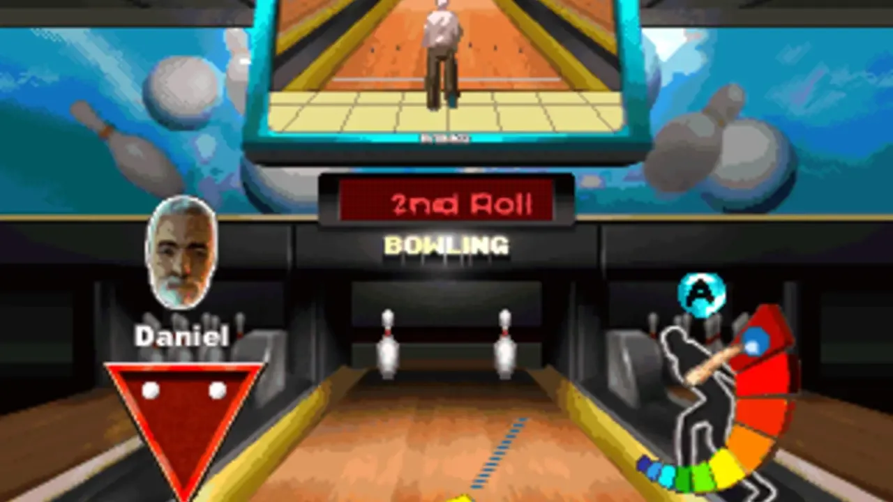 A bowling game. Three bowling lanes are offered by the game that the player can bowl in, named Jungle, Terra and Heaven.