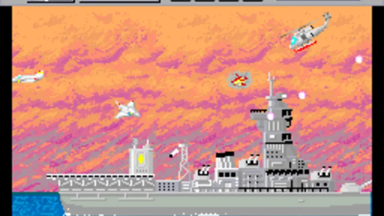 Choplifter is military themed scrolling shooter where you play as a pilot. Take off from your home base and fly across a horizontally-scrolling playfield of rugged terrain to reach the enemy Bungelings' barracks. There, you must land and rescue a group of helpless hostages and return then to your base. To hinder your mission, the enemy will attack with an array of armaments including tanks, jets, and dangerous air mines. To complete a perfect game, you must rescue all of the 64 hostages.