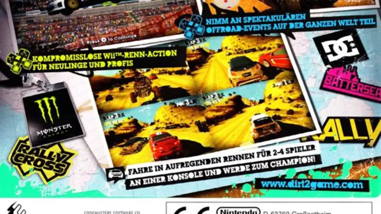 As the sequel to the acclaimed racer of 2007, DiRT 2 is set to take off-road racing games to a new level, with benchmark tech, thrilling new race types, big event atmosphere, stunning locations, a new breed of off-roading heroes and a peerless line-up of super-charged speed machines. Promising a thrilling race experience and an extreme sports attitude that borrows from snowboarding and skateboarding culture, DiRT 2 will take players on a World Tour to diverse and challenging real-world environments to compete in contemporary off-road events. Specifically selected to deliver aggressive and fast paced racing, DiRT 2's garage will house a best-in-class collection of officially licensed rally cars and off-road vehicles; covering seven vehicle classes and players will be given the keys to powerful machines right from the off.