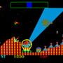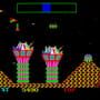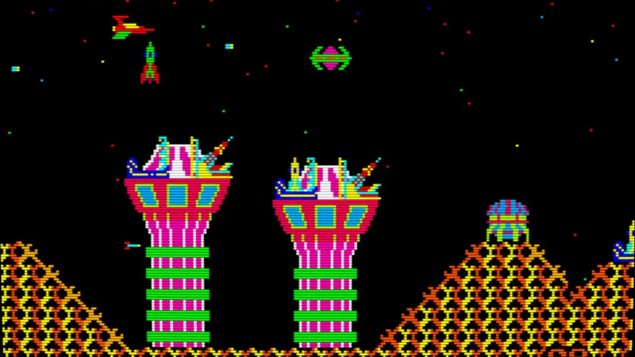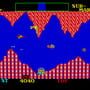 Challenger is a frantic single-screen shoot 'em up. The player is in their craft at the bottom of the screen, shooting bursts of three shots at 45 degree angles at flashing polygons. When hit, the polygons split into smaller ones. Your task is interrupted by incoming squiggly lines which will destroy your ship unless you hit it before it reaches the floor. Furthermore, a walking car or robot creature sometimes enter the screen, giving you bonus points if you locate your ship below it. As a safety measure, you have a smart bomb that damages everything onscreen, as well as the ability to change sides to the top of the screen if it gets too crowded at the bottom.