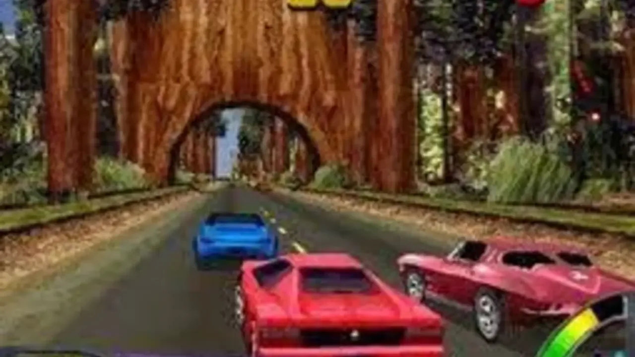 The race starts in New York's Times Square, and ends in Los Angeles's Muholland Drive. The objective of this game is to outrun seven different cars by cruising through twelve different courses, doing different kind of stunts, and using the new nitrous system. This game introduces the money system which you gain money to unlock new cars. When you start the game only four tracks and four cars where unlocked. Along the way you unlock different stages and cars by gaining money or racing in the Circuit Challenge. This game allows up to two players on the track.