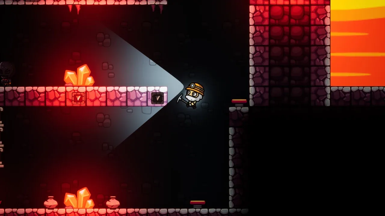 Crystal Veins is a charming 2D platformer adventure that blends lighthearted cartoon visuals with intense subterranean challenge. Players take control of Toby, a rookie miner who wakes up trapped deep underground after a mysterious cave-in. With only his pickaxe, helmet, and a flickering lantern, he must dig, dodge, and dash his way through a forgotten mine full of secrets and dangers. Each ancient gate blocking Toby’s path requires a precise number of rare crystals to open. To survive, players must mine the glowing crystal veins hidden throughout the level, evade deadly threats like lava pits, bats, and lurking cave beasts, and race to the exit before the darkness closes in. Packed with satisfying mining mechanics, smooth movement, and puzzle-like level design, Crystal Veins offers a layered, fast-paced experience where every swing and every step matters. Will you dig deep enough to escape... or be lost in the shadows forever?