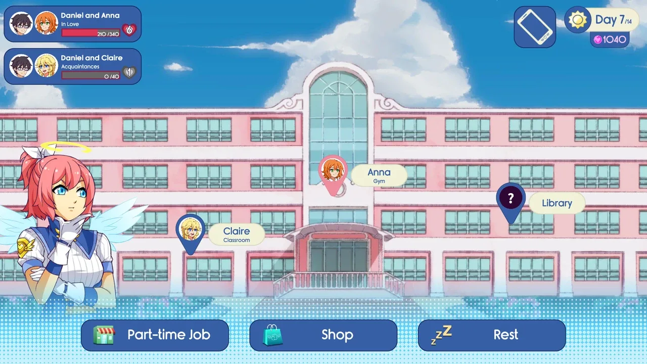 Cupid Story is a small RPG / dating sim in the Cupid Island universe. The cupid Noelia has a mission: get the human Daniel a girlfriend in 14 days. Too bad he's got no talent at all to make her job easier.