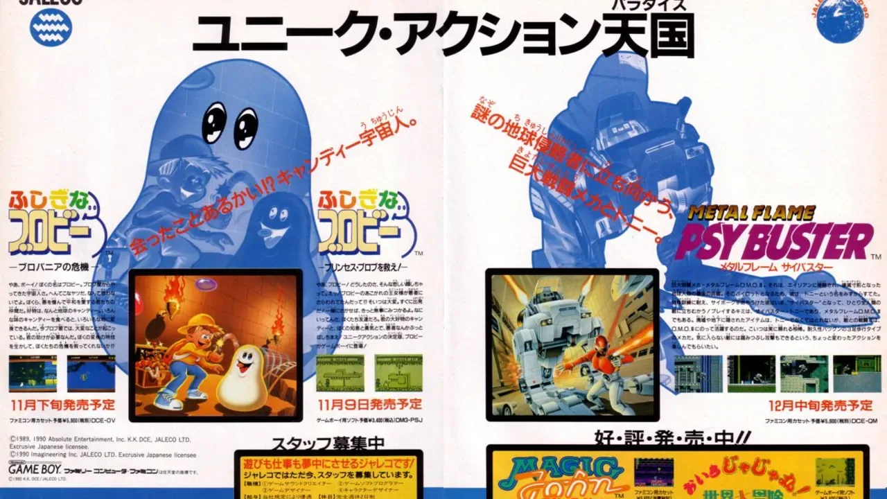 A Boy and His Blob: Trouble on Blobolonia is a 1989 video game developed by Imagineering for the Nintendo Entertainment System (NES). The game was published by Absolute Entertainment in North America and Europe and by Jaleco in Japan. A Boy and His Blob follows an unnamed, male protagonist and his shapeshifting blob friend on their adventure to save the planet of Blobolonia from the clutches of an evil emperor.