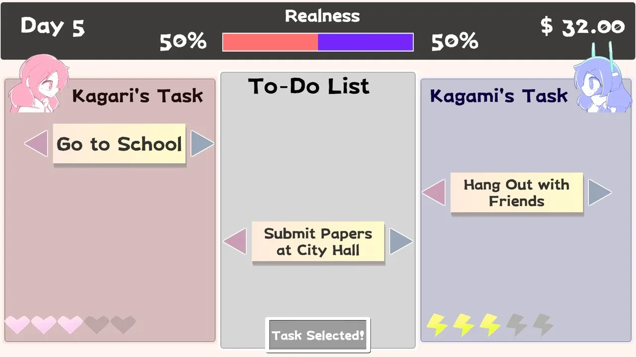 Kagari, a withdrawn child, and Kagami, the robot living in society as their stand-in— Only one will be recognized as the real Kagari. Your role is to gently observe their choices and decisions.