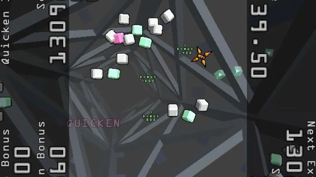A freeware game from Japanese software house OMEGA, Every Extend is a top-down action game (over a 3D background) in which you control a bomb - literally, a bomb - which you must maneuver for maximum damage. Enemy cubes of various kinds move around the playfield and by triggering an explosion at the right moment you can create massive chain reactions which wipe your enemies out.