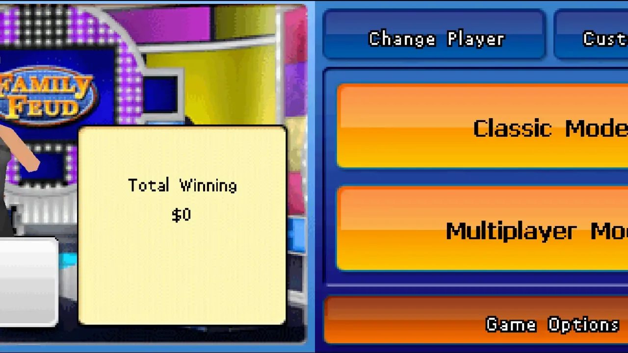 The 2010 Edition is a home game adaptation of the current iteration of the long-running competitive game show Family Feud. Two families face off against each other by predicting the most popular results of a survey question given to 100 people. Points are awarded based on the number of surveyed people who gave that same response (i.e. 63 people equal 63 points). Suggesting an answer that was not given by those surveyed gives that family a strike. The first family to reach 300 points wins the game and goes to a bonus round to try and increase their final score. The 2010 edition offers two gameplay modes. A single-player mode pits your team against ten families of increasing intelligence across ten "episodes" of the show. Success awards new clothing and hairstyles for your in-game avatar. A multi-player mode pits two teams (the actual number of people on the teams limited only by who is in the room) against each other in a full episode of the show.