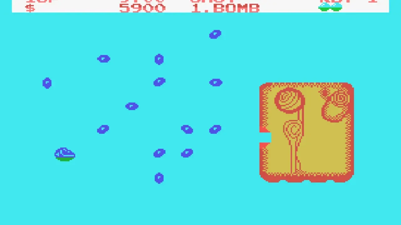 The Master System port of Fantasy Zone differs visually from the original arcade Sega System 16 version, since the hardware is much more limited.