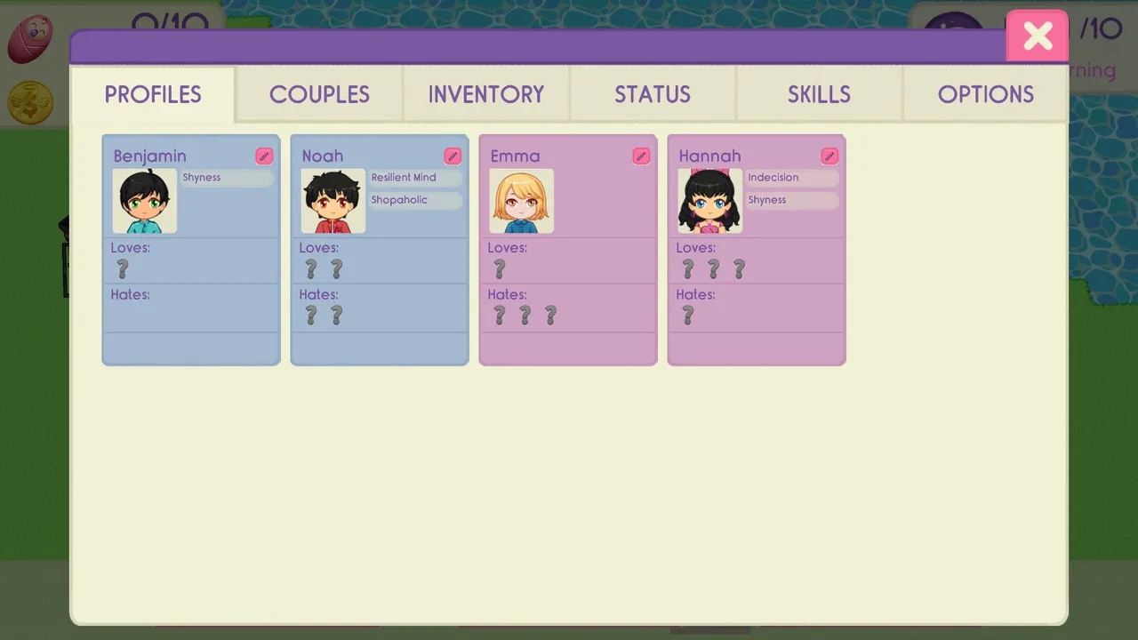 As a cupid in this visual novel, help couples have great conversations and get together on dates! These couples you create will have many kids and help repopulate Earth.