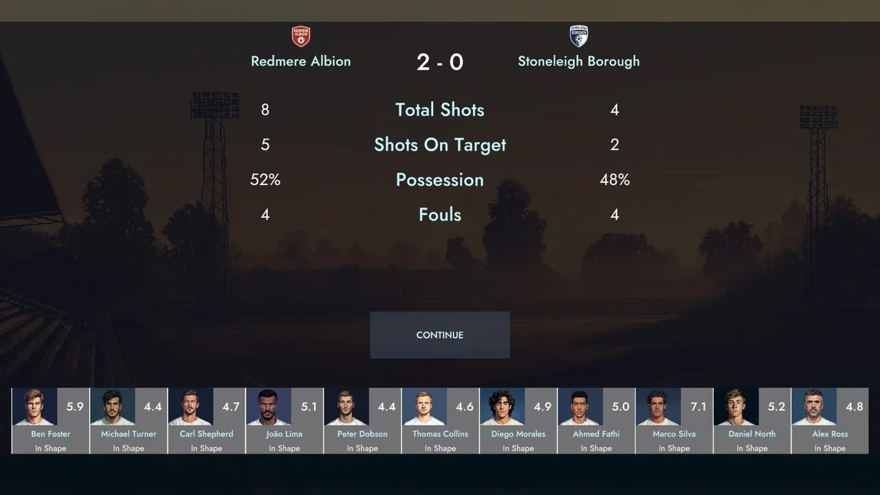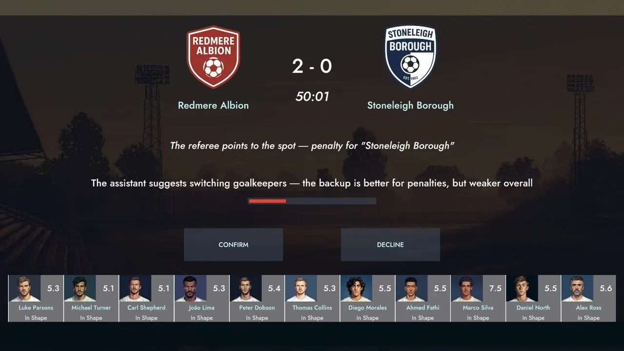 Lead a small football club through one unforgettable season. Make tough choices, face the media, manage morale and ambition — every decision shapes your story in this cinematic, story-driven football management drama.