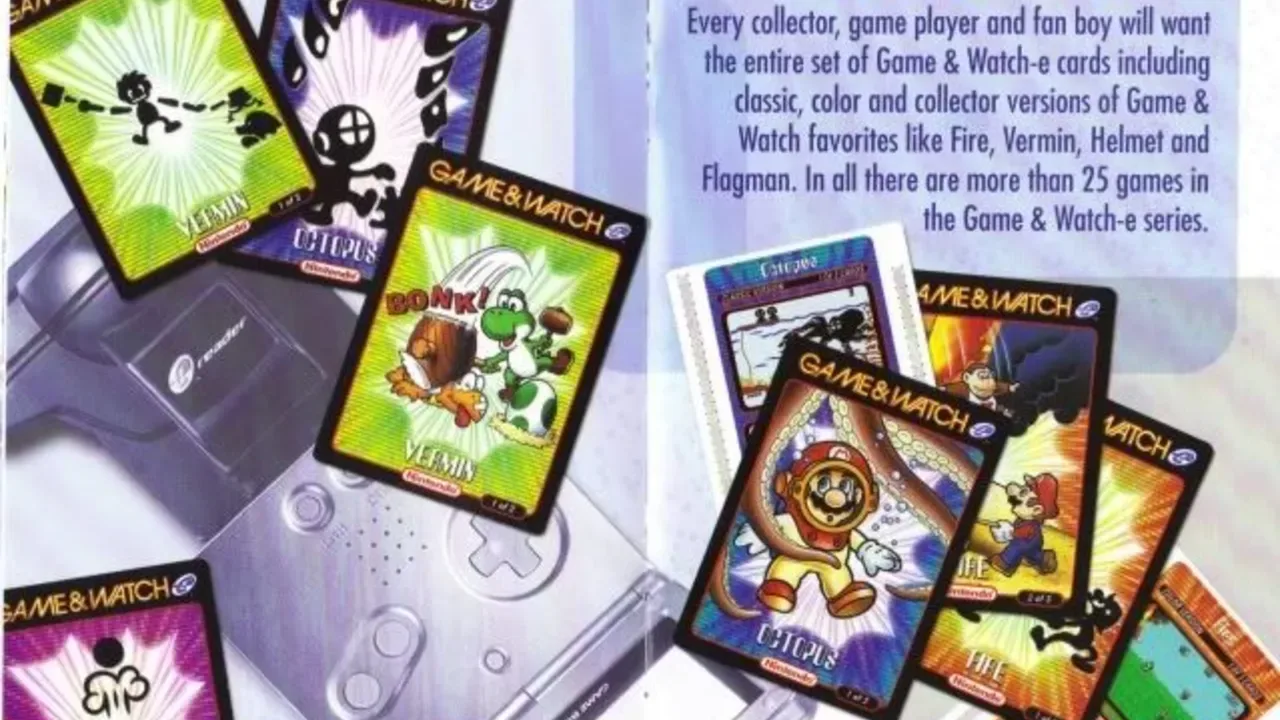 Game & Watch-e is a series of e-Reader cards meant with ports and remake versions of Game & Watch games. Each game in the Collection would receive three versions: a Classic Version (a "direct" port of the Game & Watch original), a Color Version (remakes similar to the ones in Game & Watch Gallery series) and a Collector Version. In all, more than 25 games were planned, but due to the failure of the e-Reader in North America, the only card ever produced was Manhole-e: Classic Version.