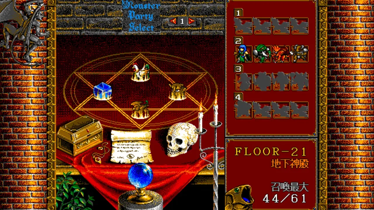 Hiōden is a strategy game with RPG elements. The player navigates several teams of characters, mostly monsters (up to six in each team) through isometric environments. Sometimes cooperation between different player-controlled teams is required to advance. The game plays in real time, i.e. enemy parties also move and perform actions without waiting for player's input. The RPG angle is present in form of character levels - characters grow stronger after defeating enemies. It is possible to put the teams on "auto-mode", having some of them move and perform actions on their own. The game has a mouse-driven interface with a somewhat unusual feature for its time: windows. The movement field of different teams, character statistics, overview map, team management screen - everything has its own window. It is possible to enlarge any window to full screen, close it, open several small windows at the same time, and drag windows to arrange them on the screen in any way.