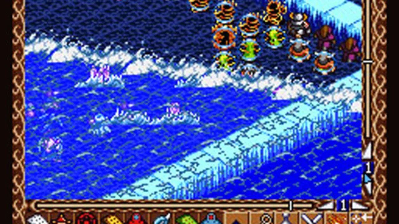 Hiōden is a strategy game with RPG elements. The player navigates several teams of characters, mostly monsters (up to six in each team) through isometric environments. Sometimes cooperation between different player-controlled teams is required to advance. The game plays in real time, i.e. enemy parties also move and perform actions without waiting for player's input. The RPG angle is present in form of character levels - characters grow stronger after defeating enemies. It is possible to put the teams on "auto-mode", having some of them move and perform actions on their own. The game has a mouse-driven interface with a somewhat unusual feature for its time: windows. The movement field of different teams, character statistics, overview map, team management screen - everything has its own window. It is possible to enlarge any window to full screen, close it, open several small windows at the same time, and drag windows to arrange them on the screen in any way.