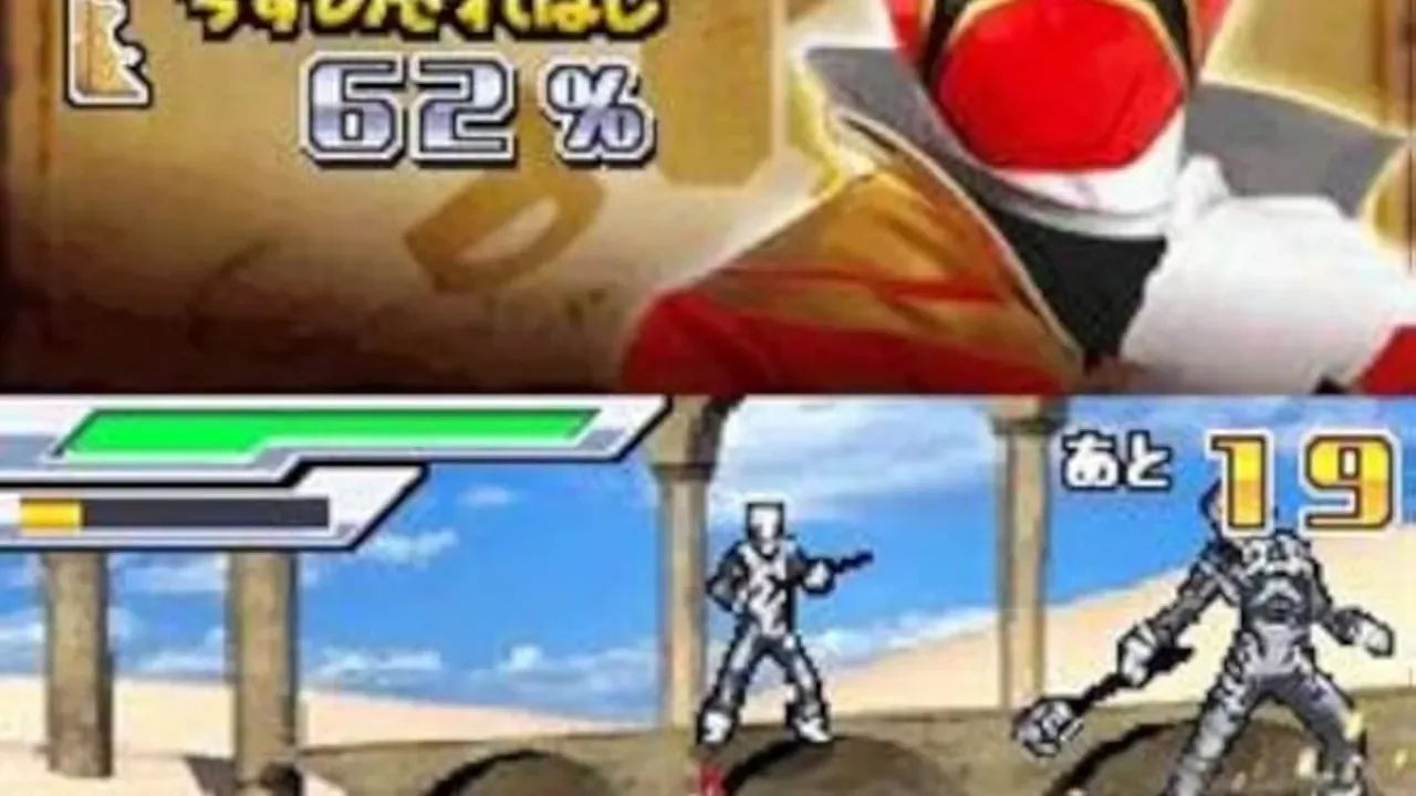 Super Sentai Battle: Ranger Cross is a video game developed by Paon and published by Bandai Namco Games Inc. in September of 2011, as part of the 35th anniversary celebration of Super Sentai. The game follows a musou-style formula in which you are pitted against hordes of enemies on a playing field and must defeat all enemies to advance, with battles in the mechas interspersed here and there. This game is technically a Gokaiger game, but as they are not the only ones you can play as, this is why the game is called Super Sentai Battle and not Kaizoku Sentai Gokaiger. The teams you can play as are: Kaizoku Sentai Gokaiger (2011) Samurai Sentai Shinkenger (2009) Tensou Sentai Goseiger (2010) Engine Sentai Go-Onger (2008) Himitsu Sentai Goranger (1975-1976) This would be the first time a non-Heisei era team would be playable in any Super Sentai game that was not a crossover with other franchises, as Goranger was the first season of Super Sentai. The other teams up to Go-Onger make appearances through the Gokai keys, but they are an extension of the Gokaiger team, and therefore are not truly playable.