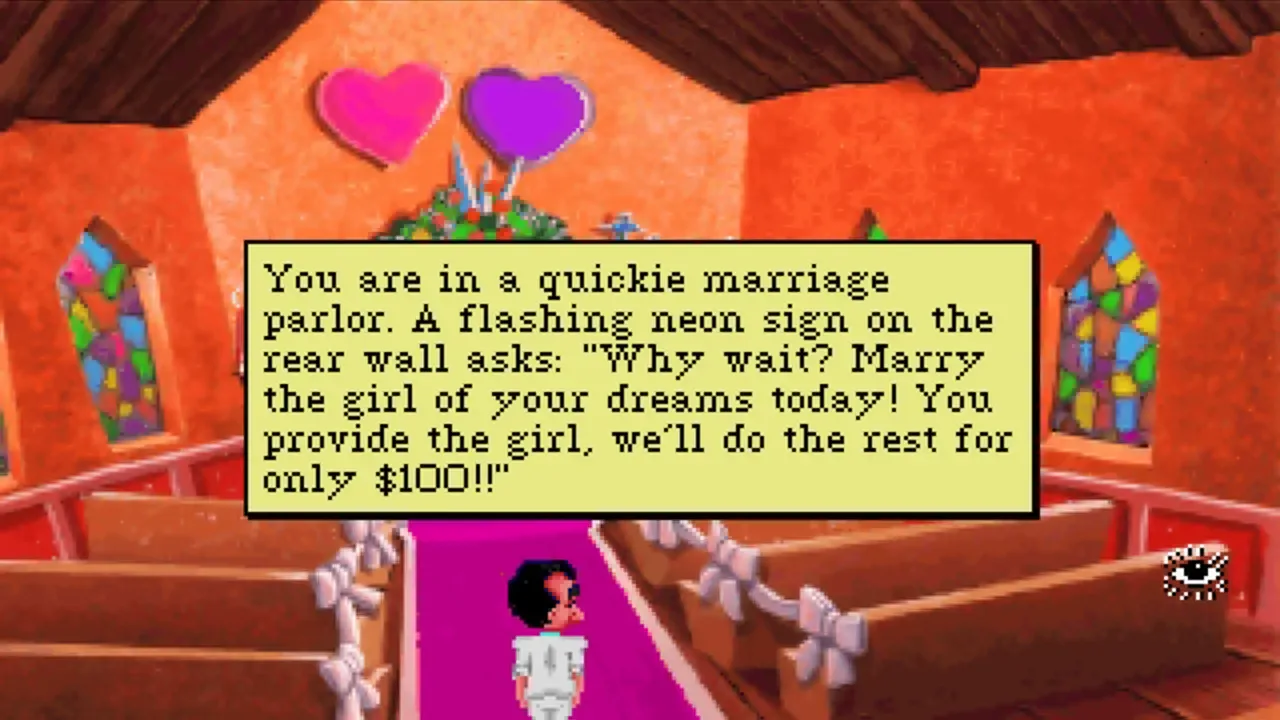 A remake of the original Leisure Suit Larry in the Land of the Lounge Lizards featuring redrawn, VGA graphics and a point-and-click interface using Sierra's Creative Interpreter (SCI) engine.