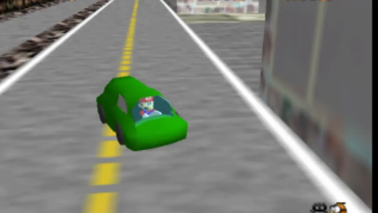 Mario Aimlessly Drives a Car Around the City 64
