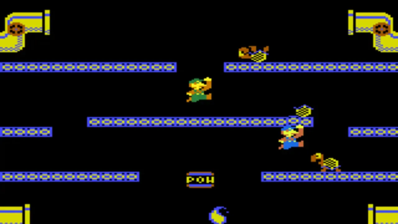 Mario Bros. is an arcade game published by Nintendo and developed by Shigeru Miyamoto. The platform puzzle which first introduced Luigi to the world has both single and multiplayer action with two differing game types, but with the same objective. Crabs, turtles and fighter flies must be cleared out by jumping underneath the platform they sit on, then kicking them away. Each level is cleared when a set number of coins is collected. For the two player mode, the first to collect the set amount of coins wins.