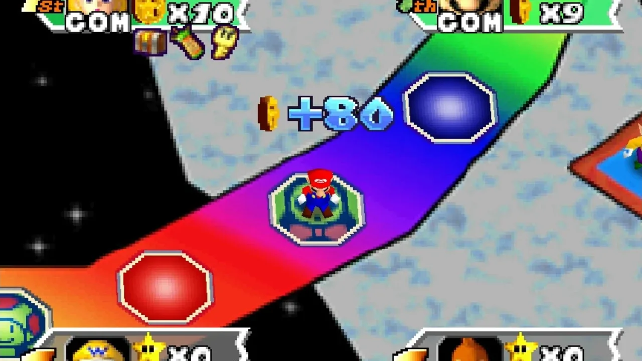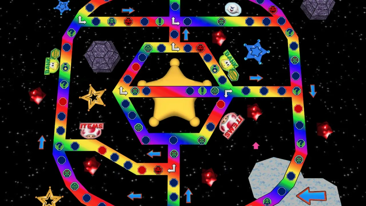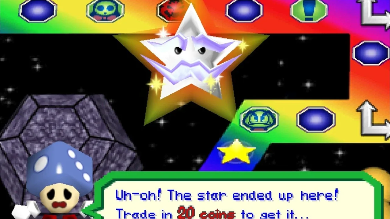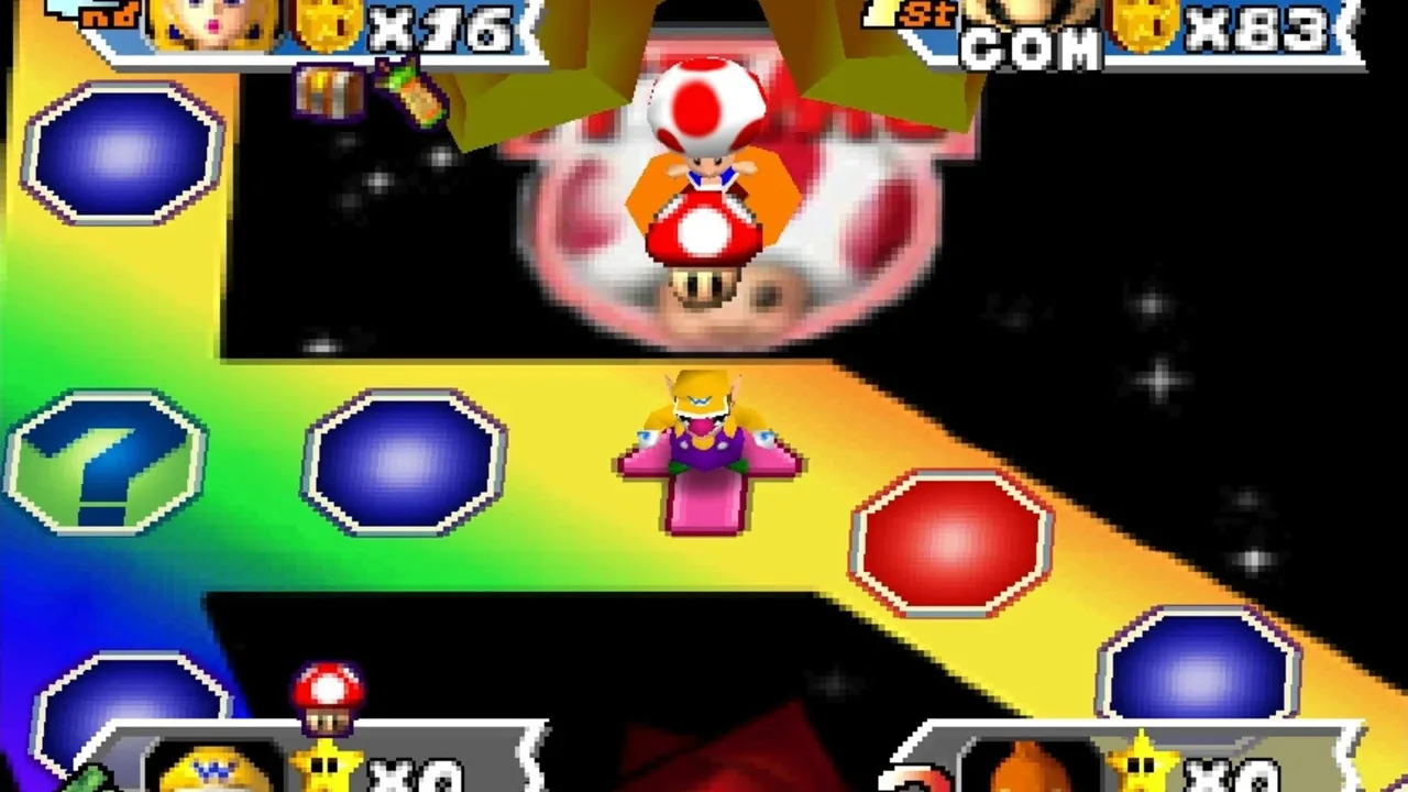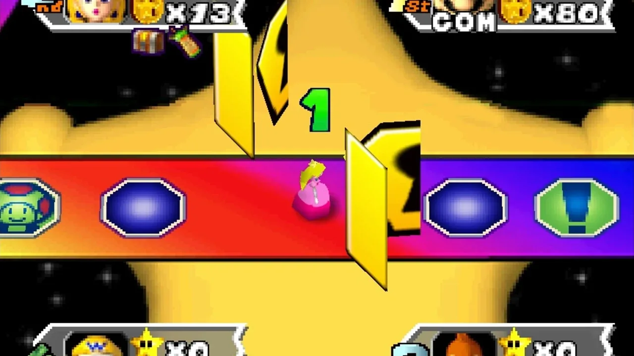 Mario Party 3 is the third and final Mario Party title for the Nintendo 64. A total of eight characters are available to choose from: Mario, Luigi, Princess Peach, Yoshi, Wario, Donkey Kong, and newcomers Waluigi and Princess Daisy. Mario Party 3 features duel maps, in which two players try to lower each other's stamina to zero using non-playable characters such as Chain Chomps. It is the first Mario Party game to feature Luigi's main voice and also it is last Mario game where Princess Daisy appears in a yellow and white dress, and with long hair, as well as the last Mario game (until New Super Mario Bros. Wii) in which Yoshi's "record-scratching" voice is used. It is also the first Mario Party game to have multiple save slots.