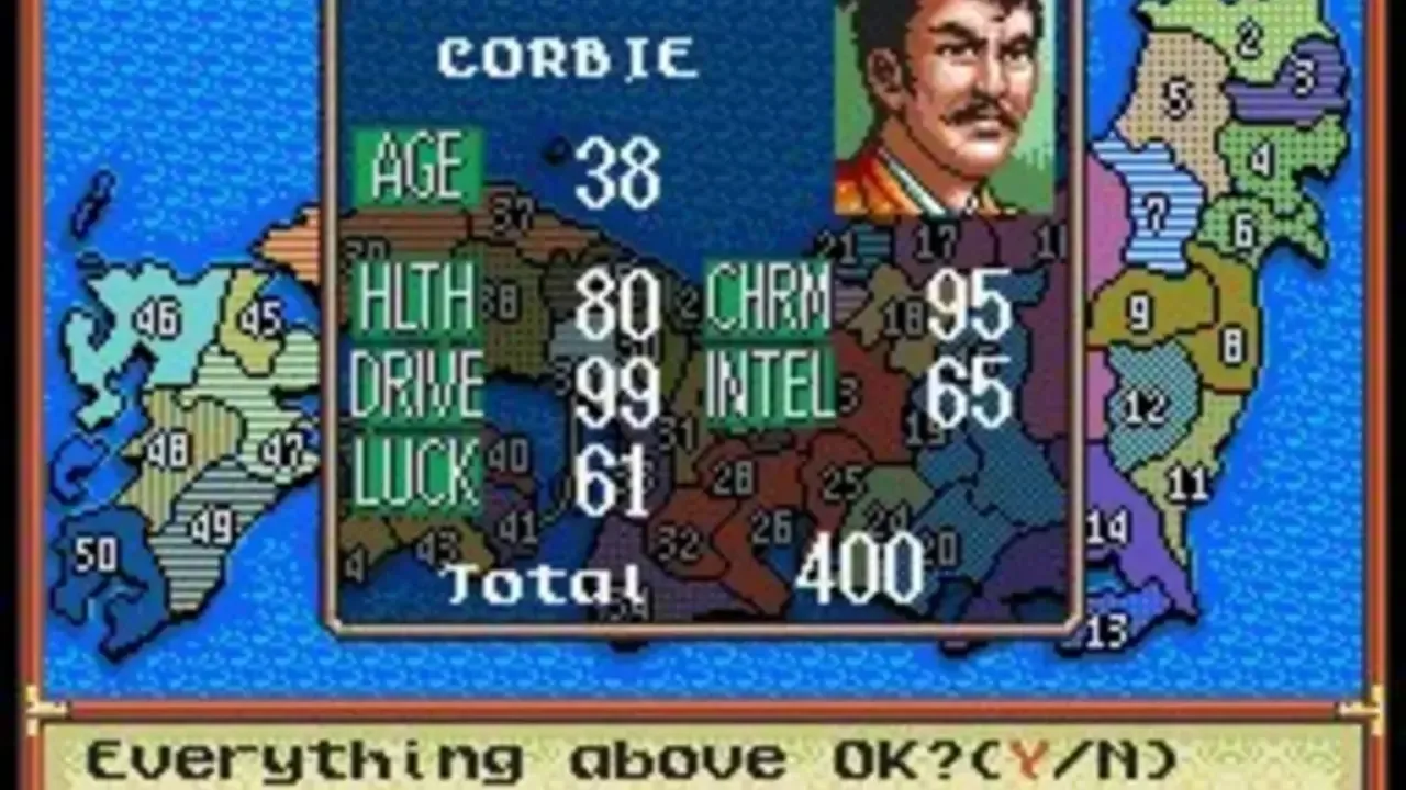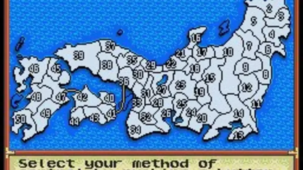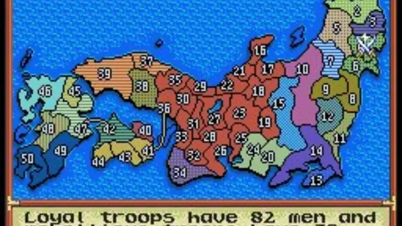 The second game in the series, previously released as Nobunaga's Ambition in the West. Players take on the role of one of the main characters of the period, Nobunaga Oda, Shingen Takeda, Kenshin Uesugi, or others and try to unite the 50 kingdoms of Japan, from Ezo in the north to Kyushu in the south, under their own rule.
