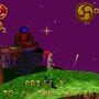 Pandemonium features 2 playable characters: Fargus, a joker, and Nikki, who unwittingly casts a spell that destroys the town. The goal of the game is to reach the Wishing Engine, where they can wish the town back to normal. For each level, the player can choose which character to be. Each has a special move - Fargus can deliver a special spinning attack, and Nikki can double jump. The game consists of a great variety of unique gameplay objects, such as watermelons, clouds, spider webs and logs.