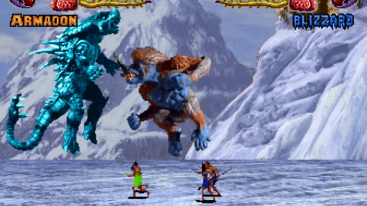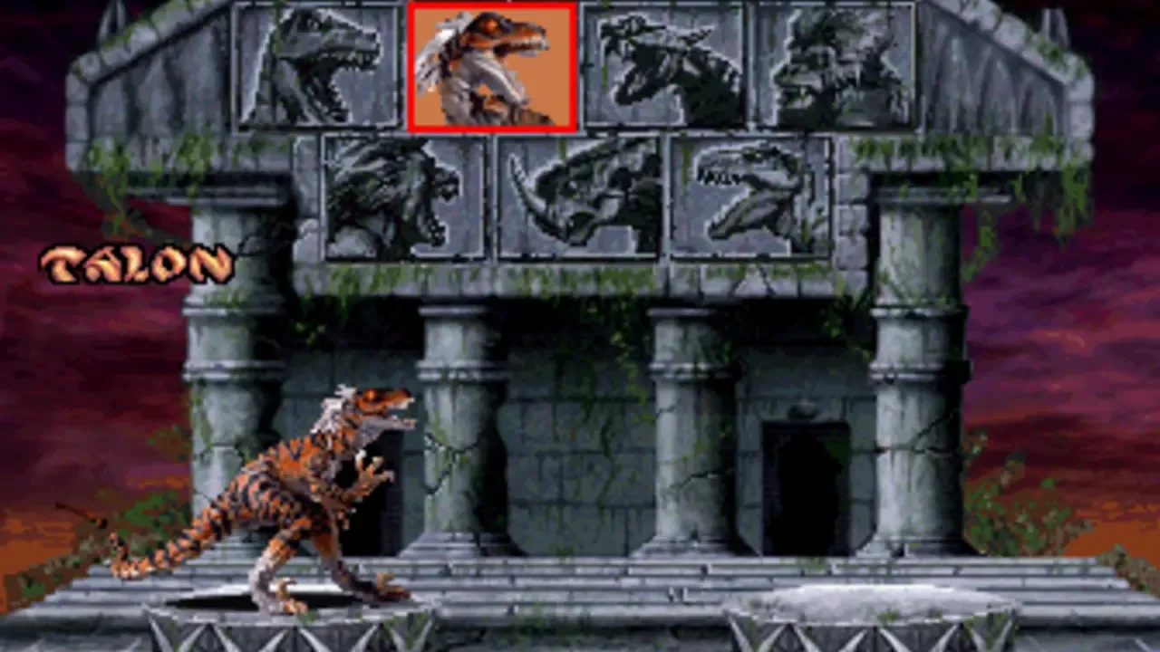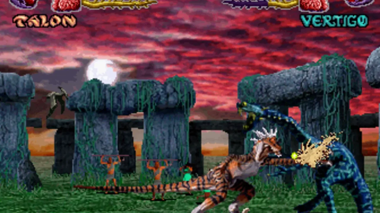 Primal Rage is a one-on-one fighting game featuring dinosaurs and giant apes as the fighters. The graphics are done with digitized stop-motion animation. Gameplay is similar to Mortal Kombat in that it is viewed from a side perspective, and features deadly finishing moves at the end of the match.