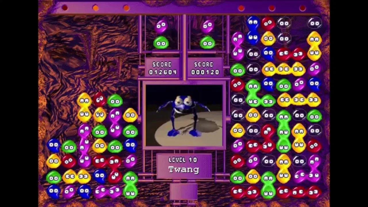 Puyo Puyo (1992) is an enhanced version of the 1991 MSX2 and Famicom Disk System game of the same name. The game was developed for the Sega System C-2 arcade hardware and ported to a variety of consoles. Puyo Puyo is a puzzle game in which the player matches four or more "Puyo" of the same color together. This game is the precursor to an identically-titled arcade release. Puyo Puyo contains three modes: Endless, Mission, and Verses. In Endless Mode, players match Puyo until the top of their well is filled. If the player chooses, either a giant 2x2 green Puyo or Carbucle will periodically help the player clear space on their board. Mission mode gives the player several challenges to complete, such as clearing a set amount of Puyo or clearing all Puyo of a certain color. Verses mode allows players to battle each other.