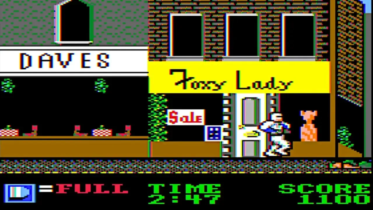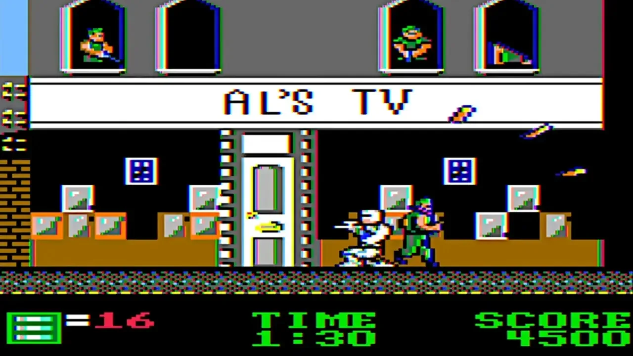 In the game, a player controls RoboCop who advances through various stages that are taken from the 1987 movie. The bonus screen is a target shooting range that uses a first-person perspective.