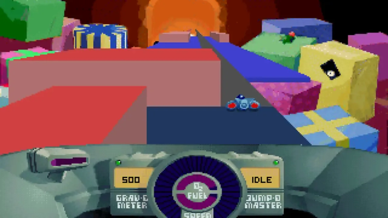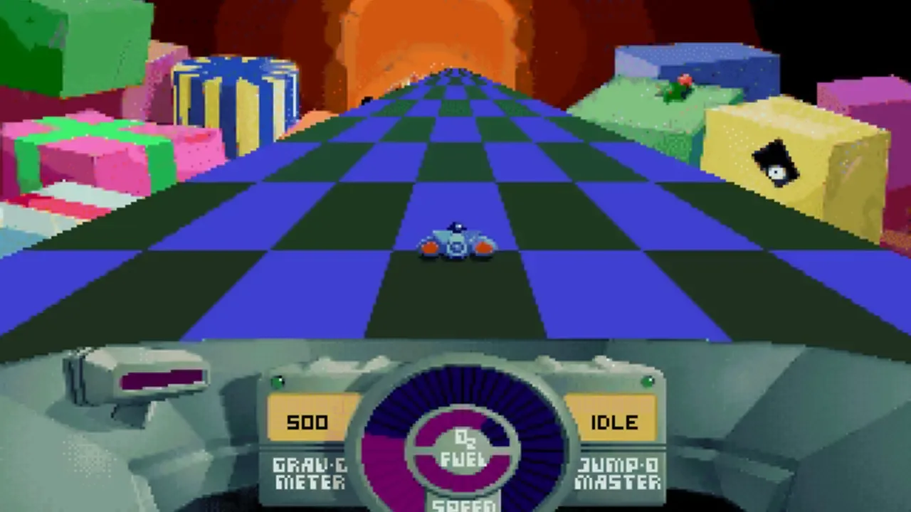 In SkyRoads the goal is to get to the end of the level using the ship's jumping capability without crashing, falling into the infinite void, exploding, running out of oxygen, or running out of fuel.