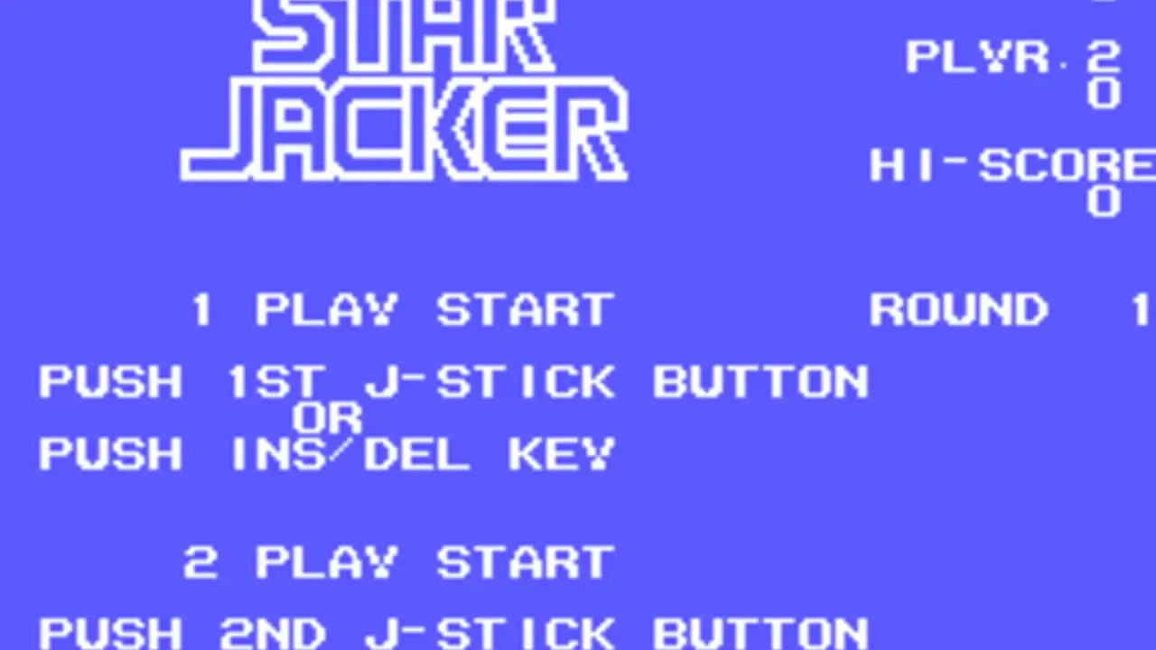 Star Jacker is an early vertical scrolling shooter with some interesting characteristics. The player starts out with three fighters with all of the fighters moving and shooting at the same time. Two fighters trail the lead fighter. Star Jacker features a similar scheme with the Namco game Xevious in that the fighters shoot at enemy fighters in the air while dropping bombs on enemies and targets on the ground level. When any of the fighters is killed, the game momentarily pauses and re-centers the player fighters before continuing at the same point. The game is over when all of the player's fighters are destroyed. Star Jacker allows no continues.