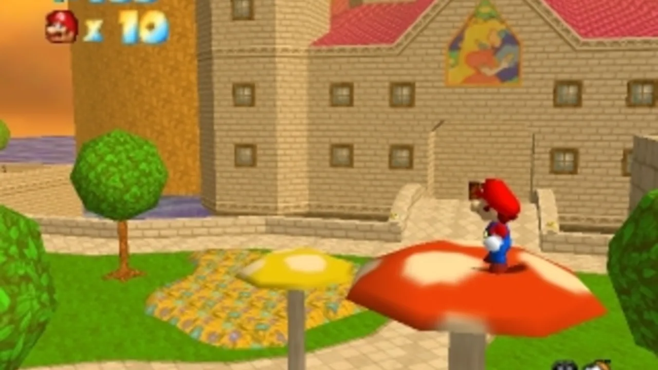 Mario is super in a whole new way! Combining the finest 3-D graphics ever developed for a video game and an explosive soundtrack, Super Mario 64 becomes a new standard for video games. It's packed with bruising battles, daunting obstacle courses, and underwater adventures. Retrieve the Power Stars from their hidden locations and confront your arch-nemesis— Bowser, King of the Koopas! • Run freely in a grassy meadow, tip-toe through a gloomy dungeon, climb to the top of a mountain, or take a swim in the moat! • Leap headfirst into a watery painting and soon you'll be searching for the surface in an underwater realm! • On-the-fly, 3-D rendered gameplay delivers the action of ruthless enemy attacks from every angle! • Find the Caps that give Mario super powers and ponder the mysteries of the pyramid; you can even race Koopas for fabulous prizes! • With the Nintendo 64 Controller and its analog Control Stick, Mario can crawl, kick down obstacles, swim, do reverse flips, and even stick the landing on his backwards somersault! • Saved game information is stored for up to four players in memory.