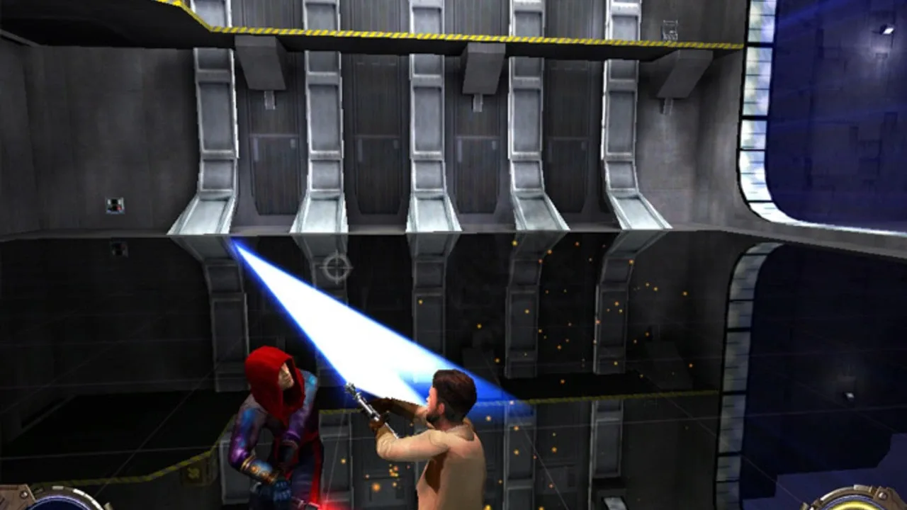 In the tradition of the highly acclaimed Star Wars: Jedi Knight series, Star Wars: Jedi Knight 2, Jedi Outcast features rebel agent Kyle Katarn in exhilarating first-person action. Several years have passed since Kyle avenged his father's death and saved the Valley of the Jedi from Jerec and his band of Dark Jedi. Allowing his Force powers to languish for fear of falling to the dark side, Kyle entrusted his lightsaber to Luke Skywalker, vowing never to use it again. But when a new and menacing threat to the galaxy emerges, Kyle knows he must reclaim his past in order to save his future. Explore breathtaking Star Wars locales such as Cloud City, the Jedi Academy on Yavin 4, Nar Shaddaa, and the smugglers' moon. Multiplayer options include deathmatch, saber-only deathmatch, and team capture the flag.