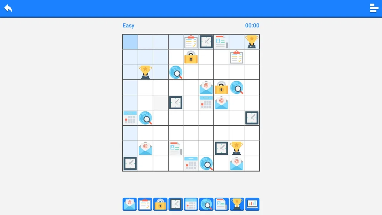 This is a variant of a very classic Sudoku game. Within a 9X9 grid, 9 different icons are placed, ensuring that each row, each column, and each section contains 9 different icons. It is extremely challenging.