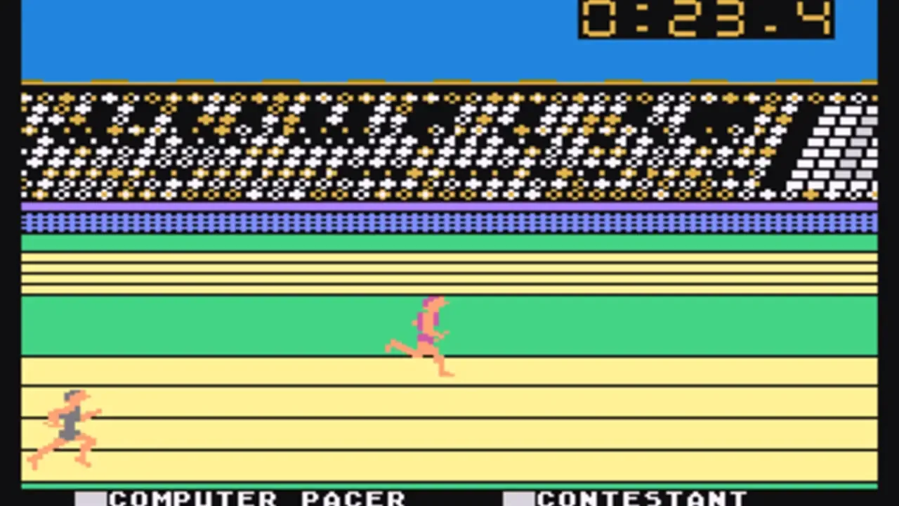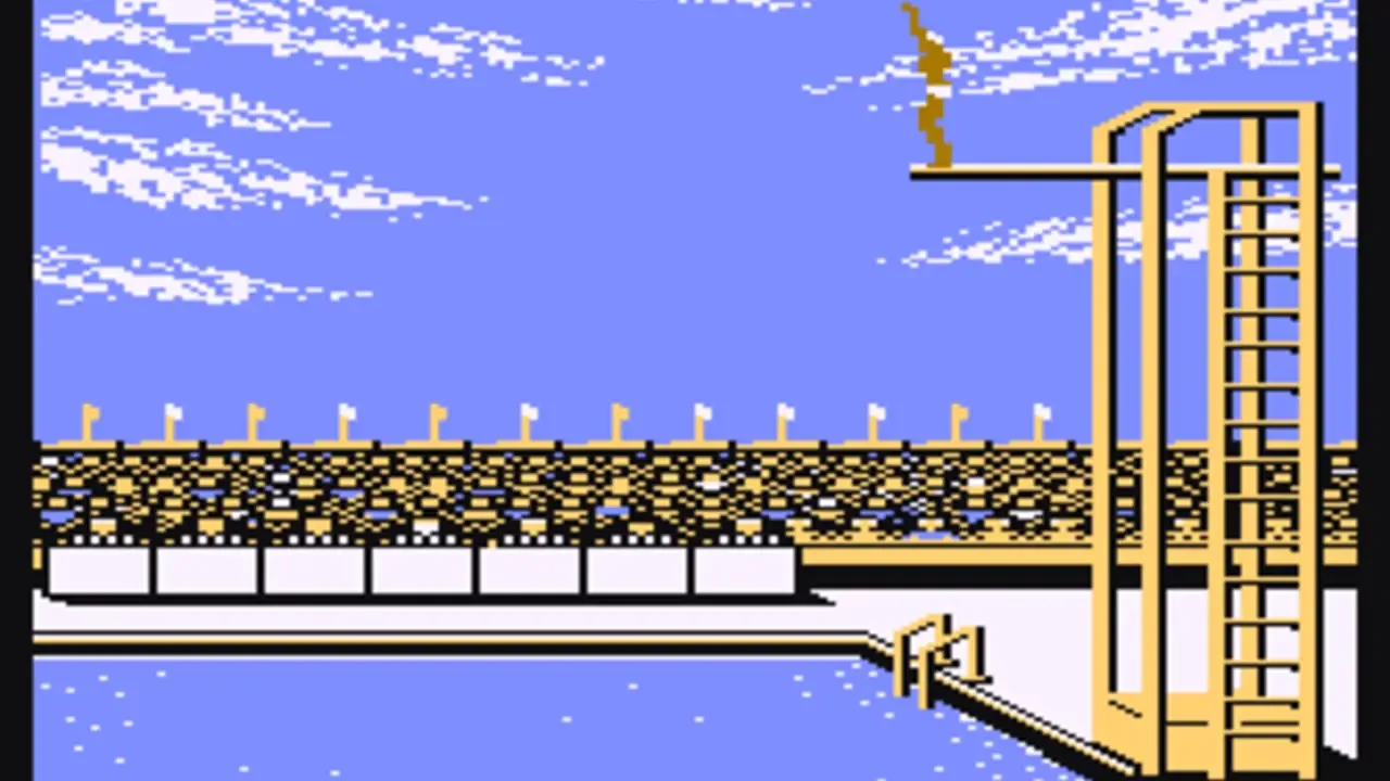 Summer Games allows up to eight players to compete in a series of summer themed Olympic events. The gameplay is similar to the other entries in Epyx "games" series. Each player can choose a country to represent, and then takes turns competing in various events to see who will win the gold medal! The game allows you to compete in all of the events sequentially, choose a few events, choose just one event, or practice an event. The events available vary slightly depending on the platform, and may include: - Pole vault - Platform diving - 4x400 meter relay - 100 meter dash - Gymnastics - Freestyle swimming - Skeet shooting - 100 meter freestyle - Rowing