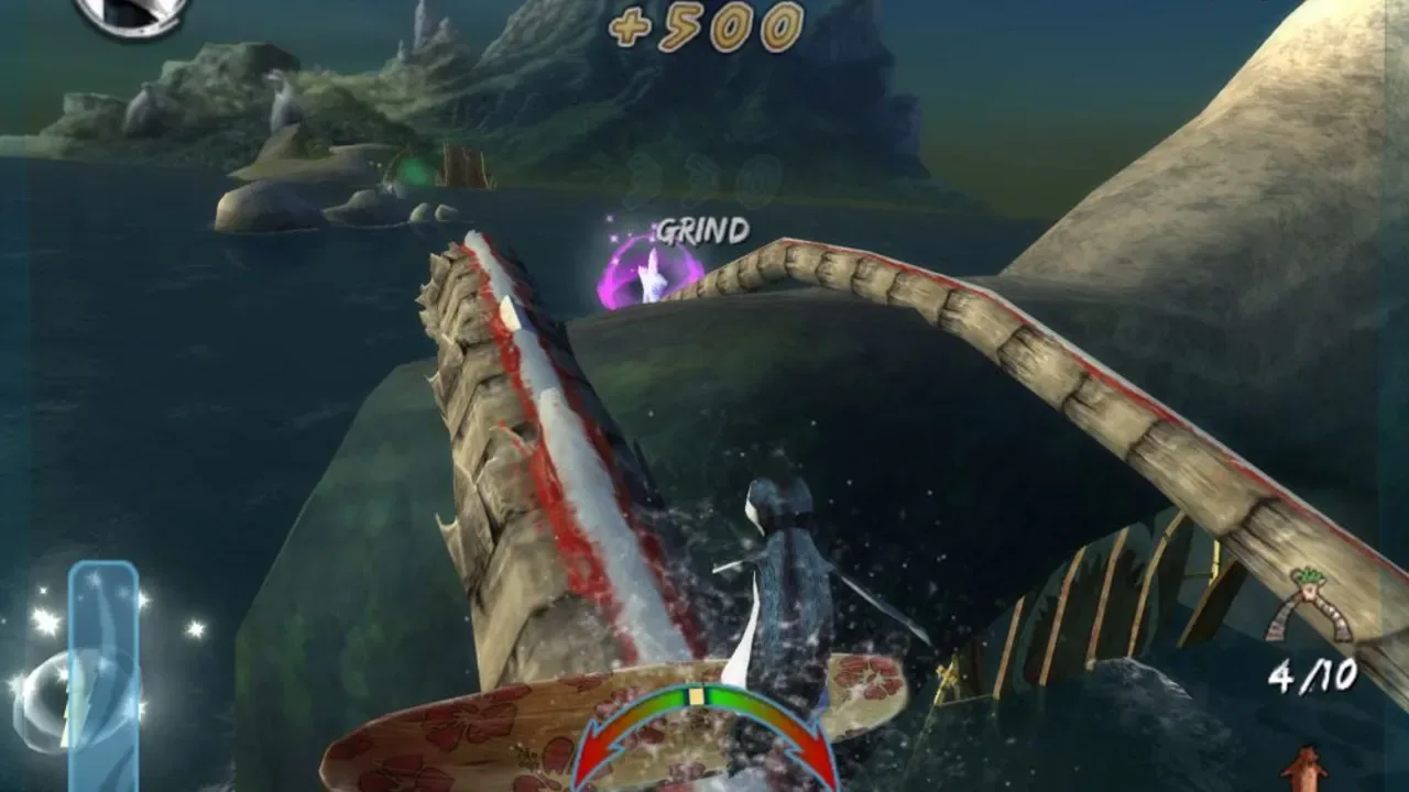 When the Surf's Up, Cody Maverick comes running to hit the tubes with his board. Based on the 2007 film, Surf's Up follows the story of a young penguin surfer from Shiverpool Antarctica who enters the Big Z Memorial Surf Off on the island of Pen Gu. Single gamers may select from ten playable characters and then work their way through several environments including Shiverpool, Pen Gu, and the volcanic area. With friends, players may compete in a variety of competitions with such characters as Tank, Big Z, and Cody.