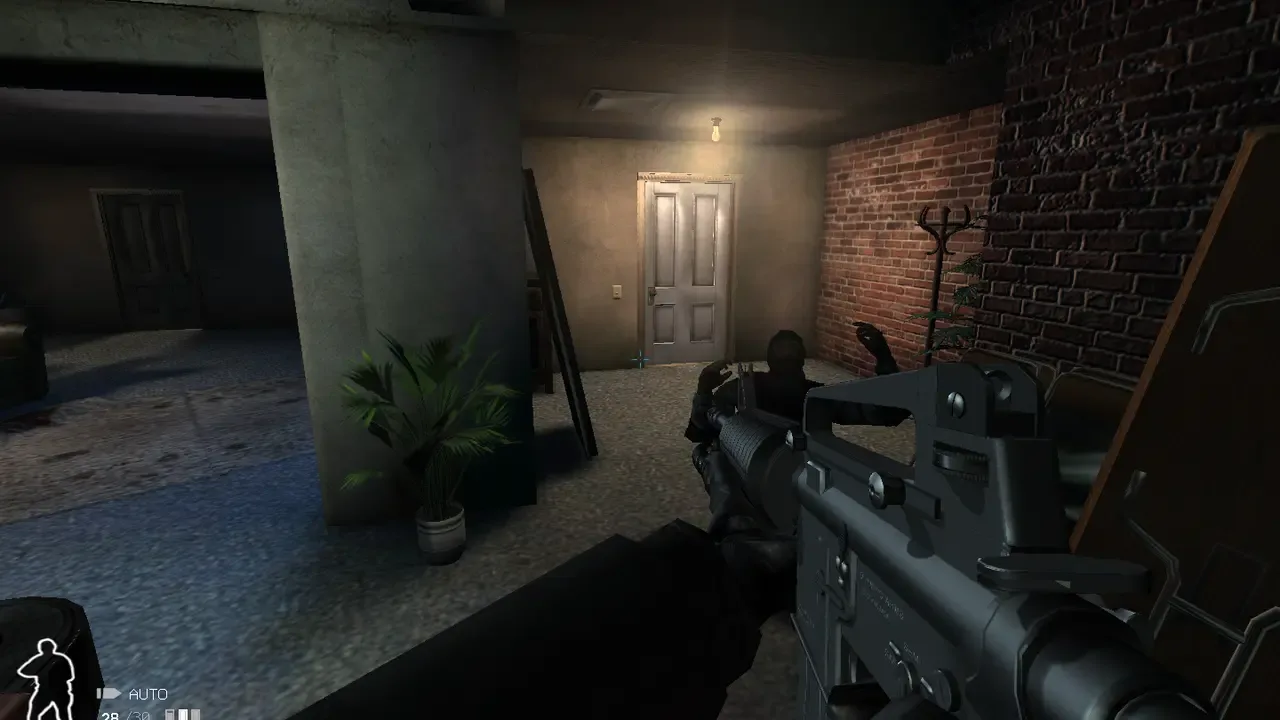 F.E.A.R. 2: Project Origin is the sequel to F.E.A.R. and continues the series' trademark blend of supernatural horror and suspense. Many mechanics from the original first-person shooter have made their way into the game, like slow motion bullet time, and intelligent AI. New gameplay elements have also been introduced, like grab and drag movable cover, combat mechs, and iron sight aiming. The environments are now more open and less linear than those in the first game, and are also more diverse.