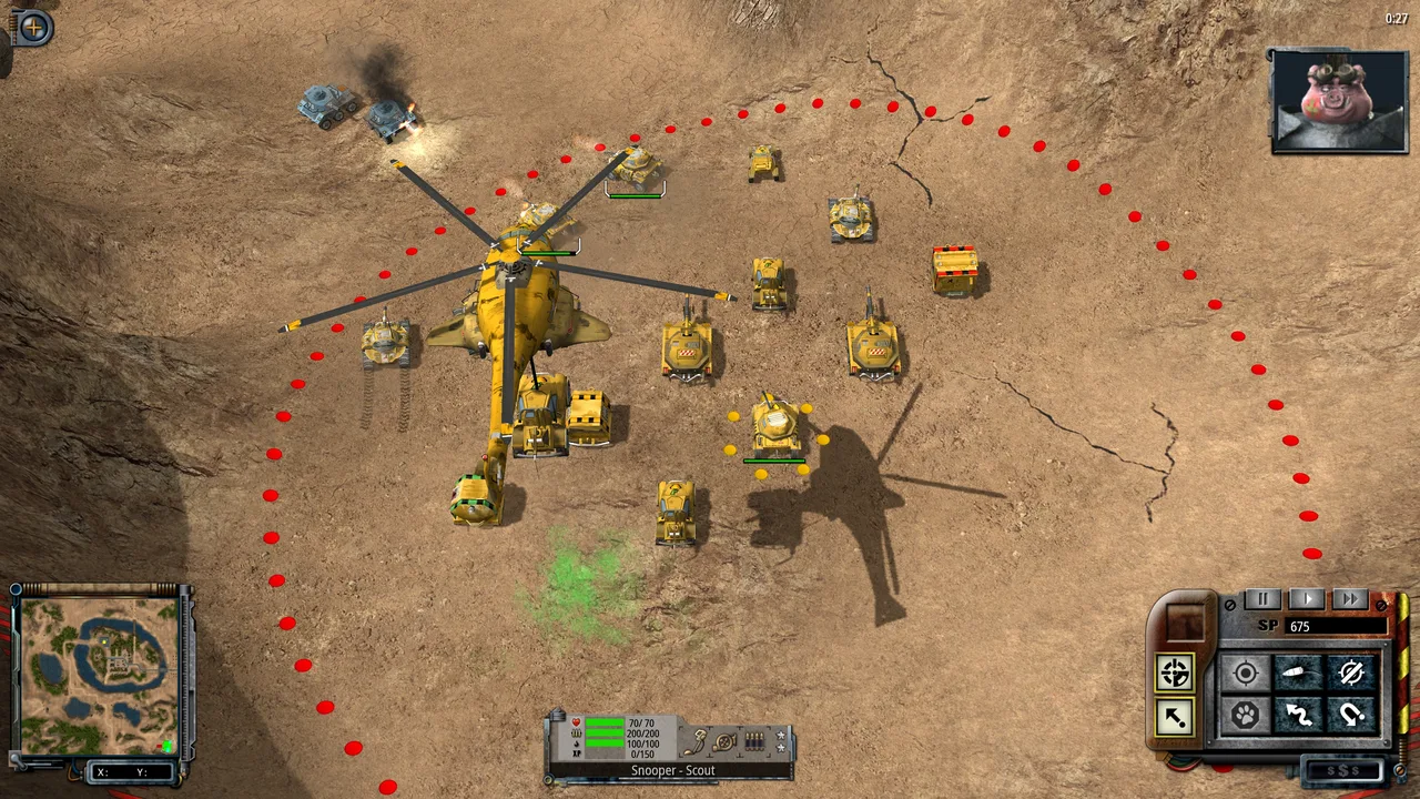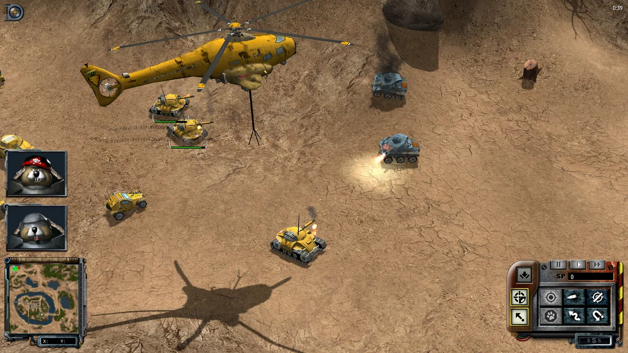 S.W.I.N.E. (Strategic Warfare In a Nifty Environment) is a real-time tactics game designed by FishTank Studios. The player chooses to fight as either the brutal invading pigs or the pacifist rabbits, and plays a series of missions. There are many units, including mortar, artillery, and tank units. There are also 10 multiplayer campaigns, each with many modes of play, including capture the flag and deathmatch.