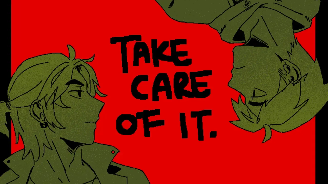 take care of it. is a psychological game about guilt and toxic patterns depicted through the experience of daily life after a traumatic event. The narrative is driven by player choices, allowing them to explore the different sides of Riley and his relationship with Austin.