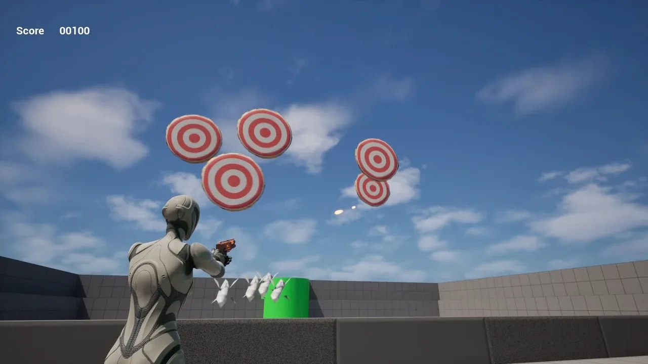 This is the first of a series of shooting games we are working on. In this game we worked on the guns feeling and aiming concept. In the next game, the player will be able to move in a 3D scene.