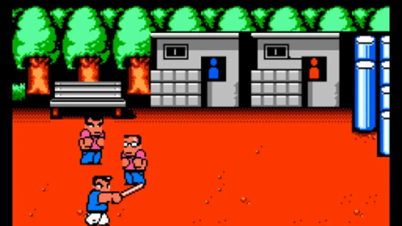 River City Girls stars Kyoko and Misako, two street-tough high-schoolers who must fight their way through the six regions of River City to rescue their kidnapped boyfriends, series mainstays Kunio and Riki. Along the way, they'll utilize an arsenal of combos, counters, throws, and special attacks; battle an assortment of enemies; accept numerous side quests; level up with experience points; interact with NPCs (including guest stars from past River City games); and shop for a variety of items, food, and gear to boost stats and unlock new abilities. The girls can even wield weapons and recruit defeated foes to join them in combat!
