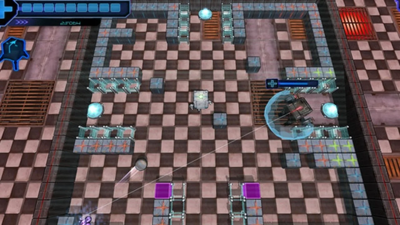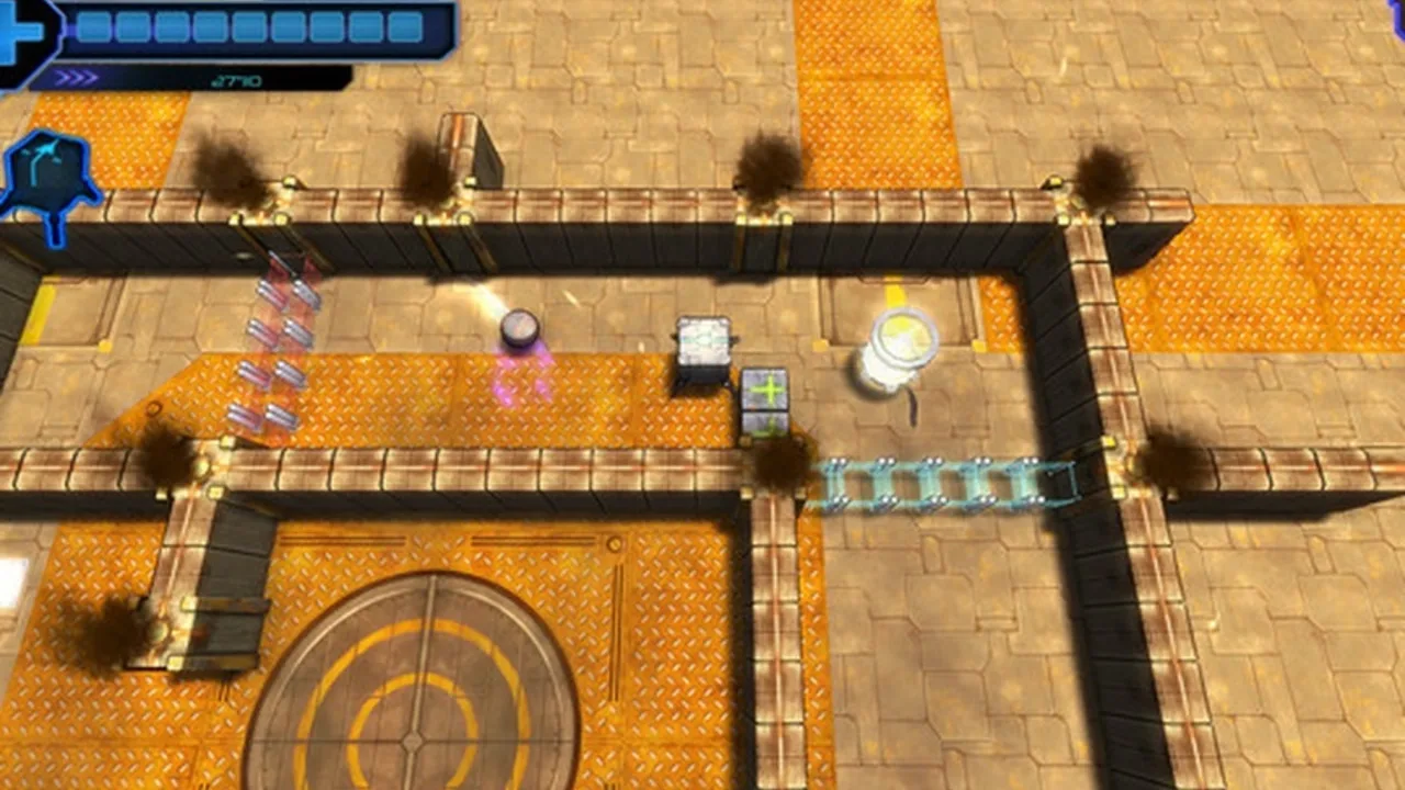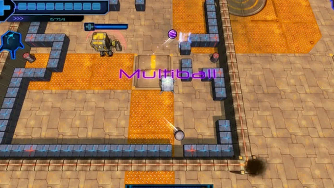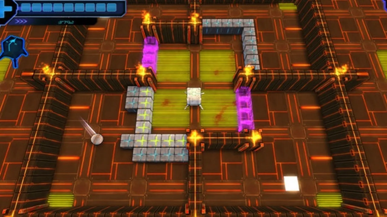 Titan takes the Breakout concept and adds another dimension by allowing the object the player controls to be able to move on the Y-axis in addition to the old X-axis. The display will follow the small square which the player controls as it moves on a map where there are objects whom your goal is to make a ball hit. The player controls a small rectangle only slightly larger than the size of the ball itself and in addition to hitting the "bricks" to destroy them has to keep the ball away from dangerous hazards which will kill the ball if it hits.