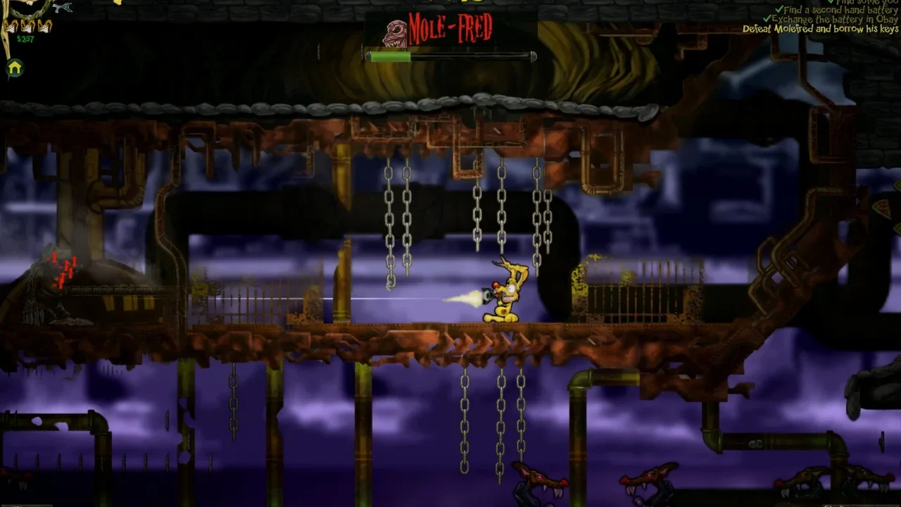 Toxic Bunny is a side-scrolling action platform game for MS-DOS computers released in 1996 by Celestial Games. The game covers four large levels in which Toxic hunts the person (or animal) responsible for interrupting his coffee break, brainwashing all his friends, and covering the planet with a decaffeinated goo. Within the game you can use any number of incredibly large weapons including a Nitric Hamster Launcher, while squashing aliens with rusty nautical equipment. The game has been called a psychedelic parody of Epic Games character, Jazz Jackrabbit.