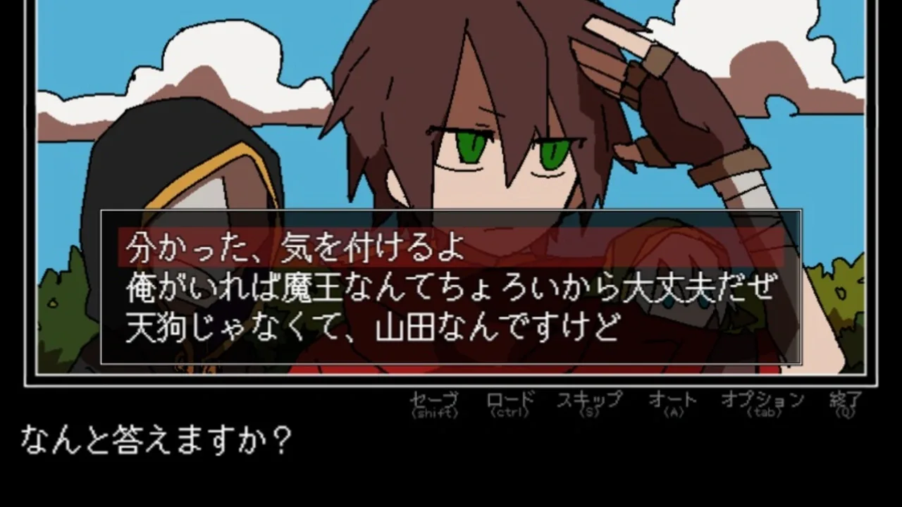 Yuusha no Sentakushi ga Okashii is an independent gag text adventure game. The complete version was released by Minatonezumi, on PC in 2025.