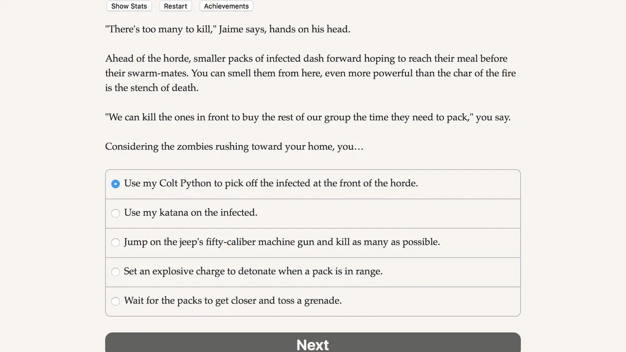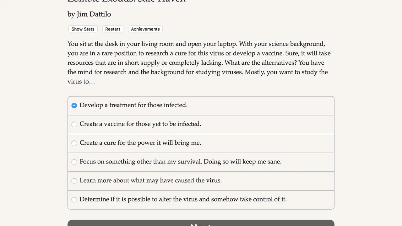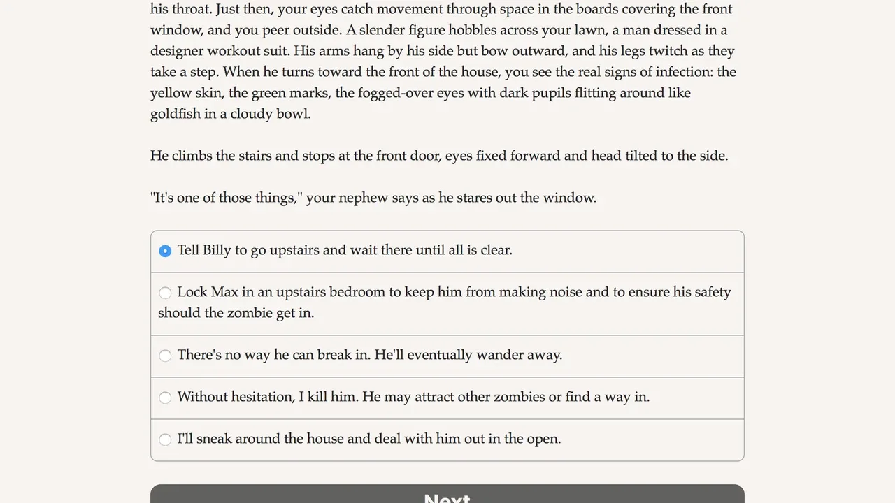 Zombie Exodus: Safe Haven: Part Two continues your story as you escape Nightfall with your new group of survivors in search of a safe haven. Continue your story from part one, or skip right to the new chapters with a new character!